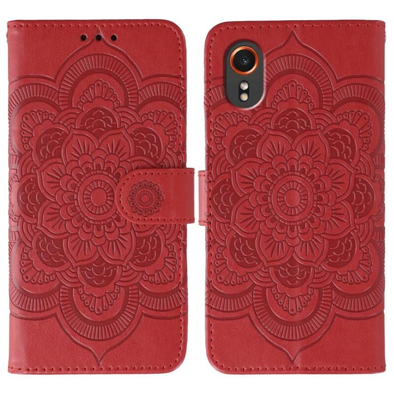 Θήκη δερμάτινη για Samsung Galaxy Xcover 7 με ανάγλυφο σχέδιο Sun Mandala (Κόκκινη)