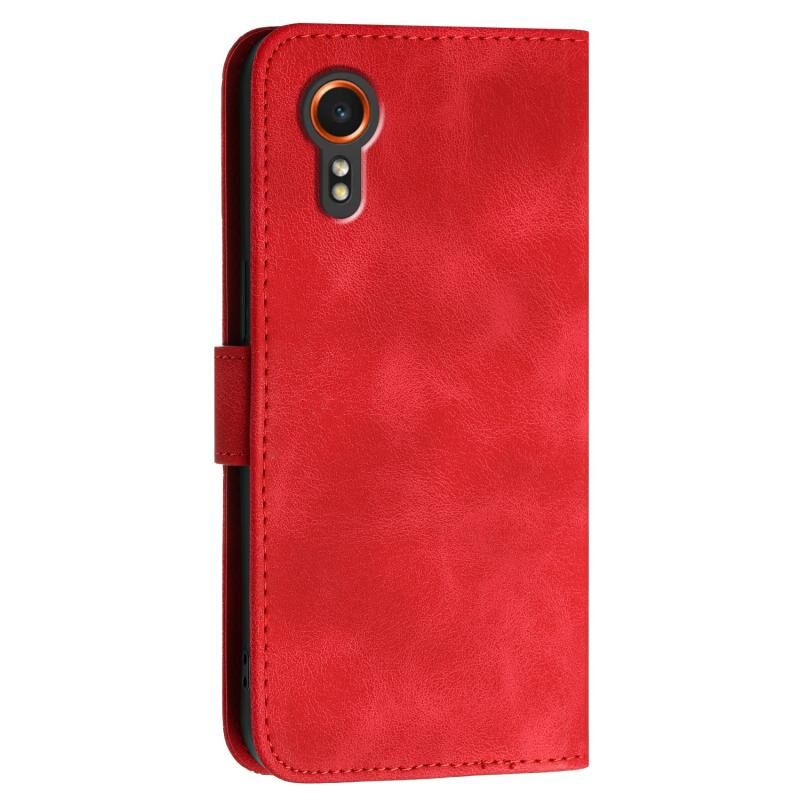 Θήκη τηλεφώνου Samsung Galaxy XCover 7 YX0080, δερμάτινη, τύπου flip, με ανάγλυφο σχέδιο πλέγματος και πεταλούδας και λουρί (Κόκκινο)