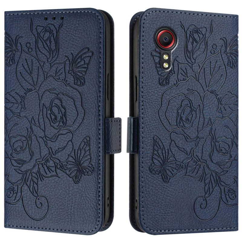 For Samsung Galaxy Xcover5 Embossed Rose RFID Anti-theft Leather Phone Case(Dark Blue)