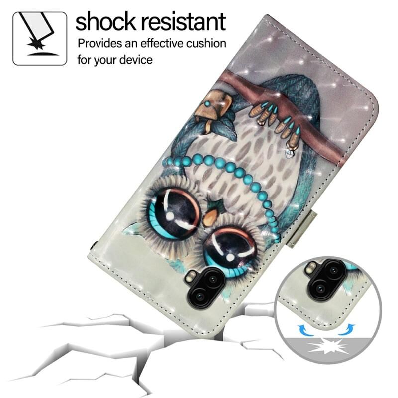 Θήκη τηλεφώνου Samsung Galaxy Xcover6 Pro, δερμάτινη, οριζόντια αναδιπλούμενη, με τρισδιάστατη ζωγραφική (Γκρι κουκουβάγια)