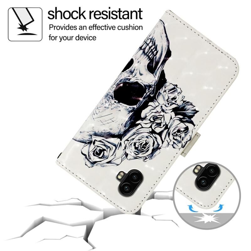Θήκη τηλεφώνου Samsung Galaxy Xcover6 Pro, δερμάτινη, οριζόντια αναδιπλούμενη, με τρισδιάστατη ζωγραφική (Κρανίο)