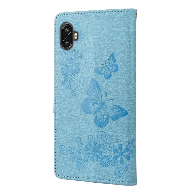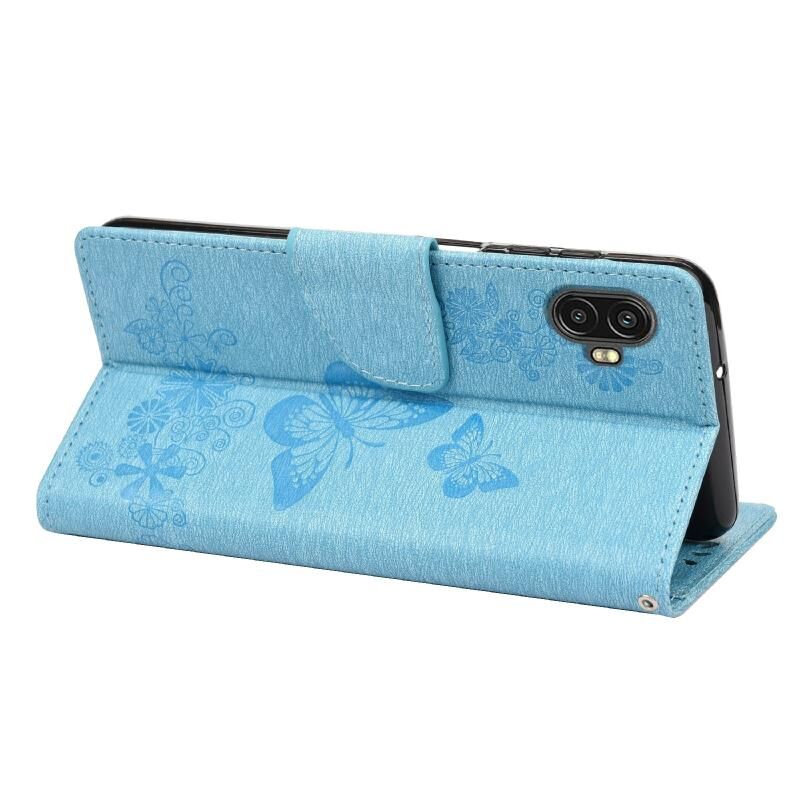Θήκη τηλεφώνου Samsung Galaxy Xcover6 Pro με ανάγλυφο σχέδιο πεταλούδων, οριζόντια, δερμάτινη (Καφέ)