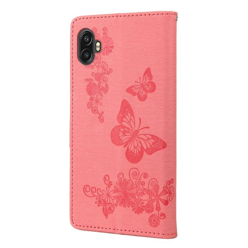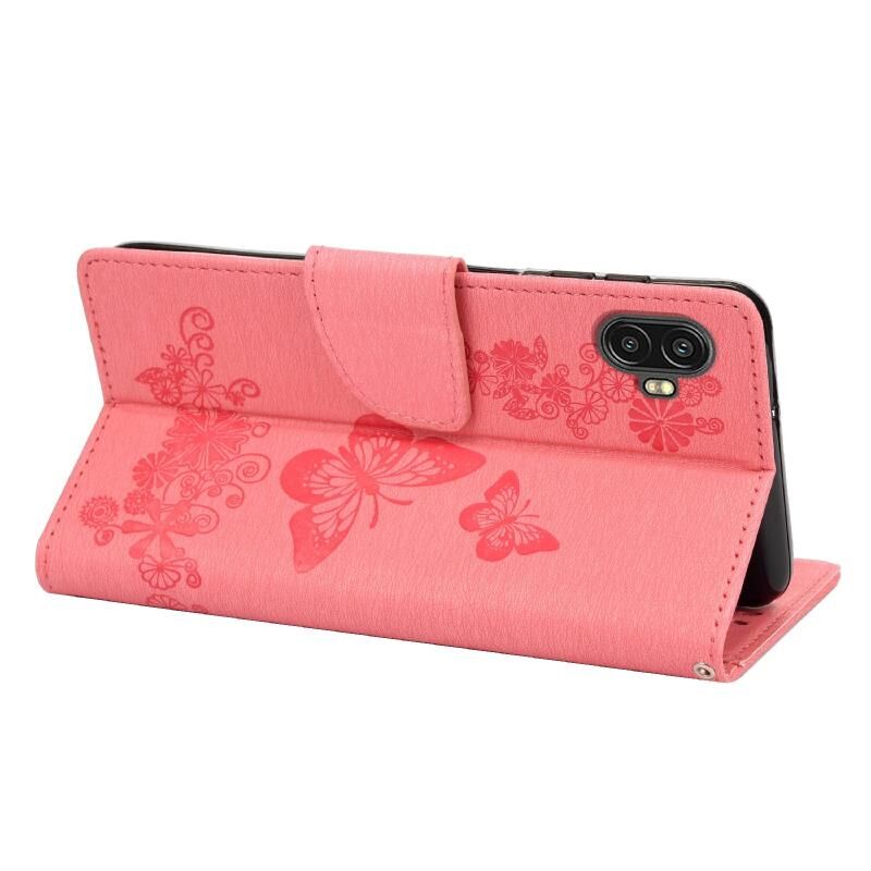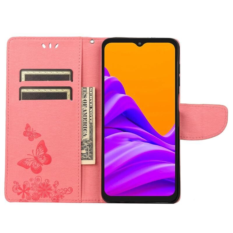 Θήκη τηλεφώνου Samsung Galaxy Xcover6 Pro με ανάγλυφο σχέδιο πεταλούδων, οριζόντια, δερμάτινη (Καφέ)
