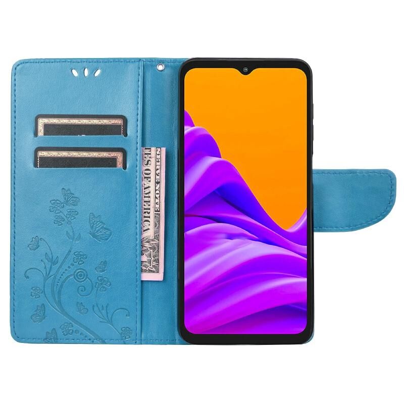 Θήκη τηλεφώνου Samsung Galaxy Xcover6 Pro από δέρμα με οριζόντιο άνοιγμα, σχέδιο πεταλούδας-λουλουδιού, με θήκη για κάρτες & στήριξη (Πράσινο)