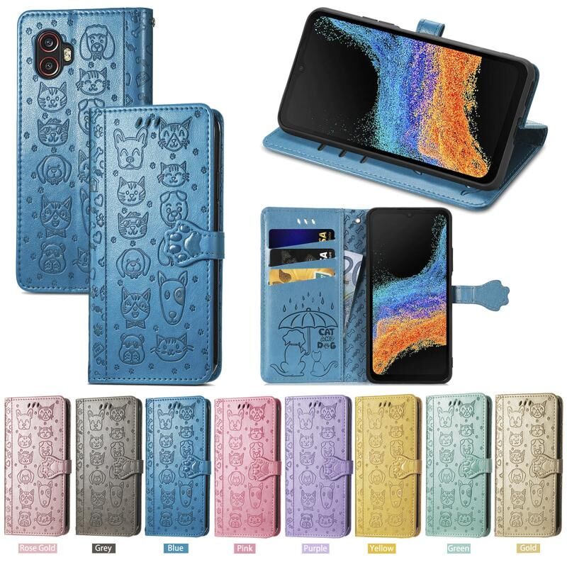 Θήκη τηλεφώνου από δέρμα με ανάγλυφα σχέδια χαριτωμένων γάτας και σκύλου για Samsung Galaxy Xcover6 Pro (Μπλε)