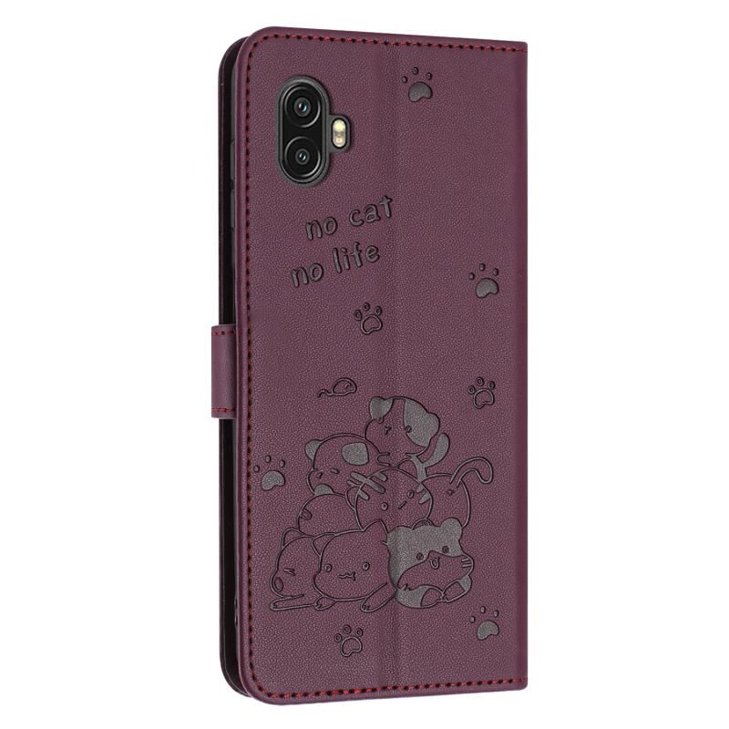 Θήκη δερμάτινη για Samsung Galaxy XCover6 Pro με ανάγλυφο σχέδιο γατάκι και λουρί (Μωβ)