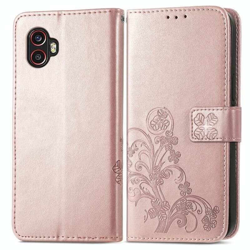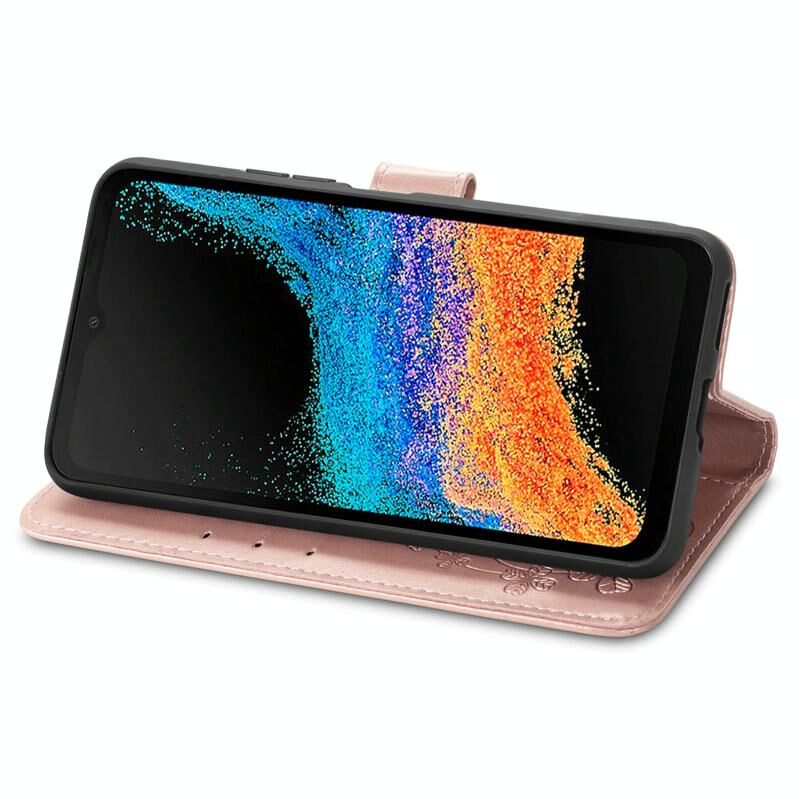 Για Samsung Galaxy Xcover6 Pro Τέσσερα φύλλα ανάγλυφο κούμπωμα αγκράφα δερμάτινη θήκη τηλεφώνου (ροζ χρυσό)