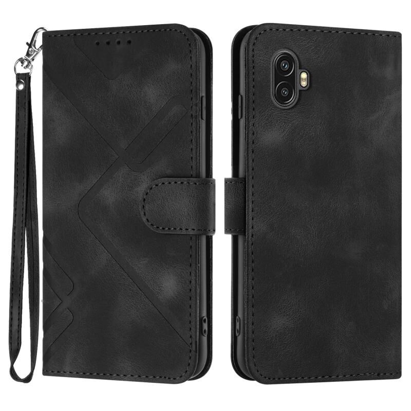 Για το Samsung Galaxy Xcover6 Pro Line μοτίβο δέρμα δέρμα αίσθηση υπόθεση τηλεφώνου (μαύρο)