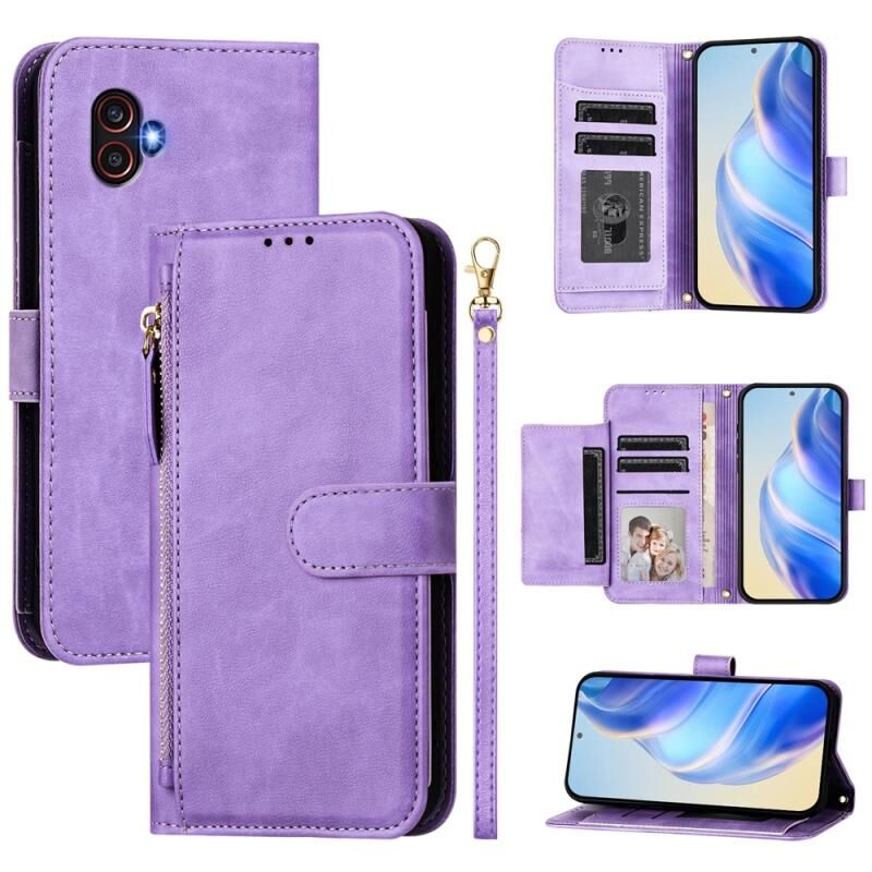 Θήκη τηλεφώνου Samsung Galaxy XCover6 Pro από δέρμα με φερμουάρ και πολλαπλές θήκες για κάρτες (Μαύρο)