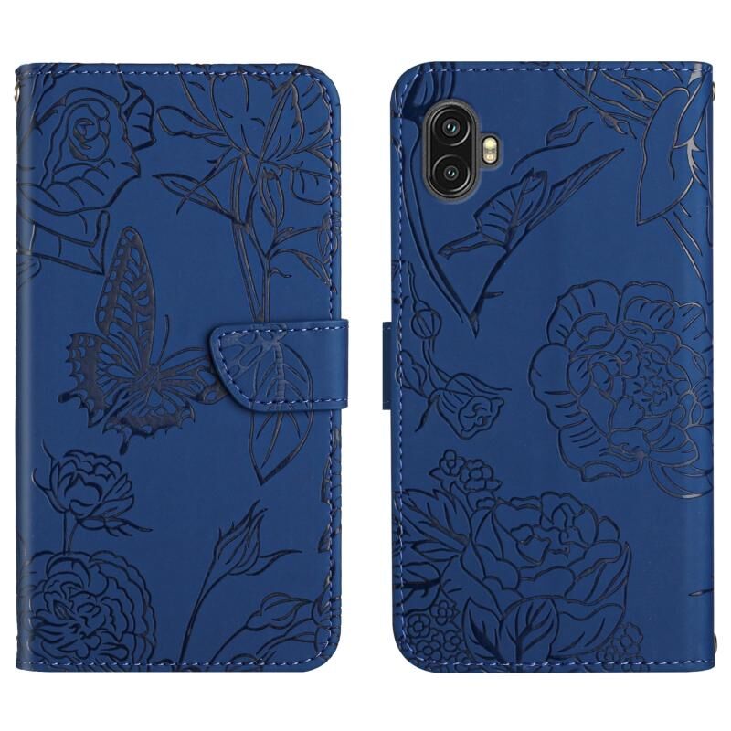 Για Samsung Galaxy Xcover6 Pro δέρμα αίσθηση πεταλούδα Peony ανάγλυφη δερμάτινη θήκη τηλεφώνου (μπλε)