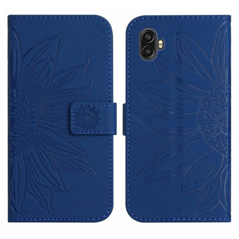 Για το Samsung Galaxy Xcover6 Pro δέρμα αίσθηση Sun Flower μοτίβο Flip δέρμα τηλέφωνο υπόθεση με κορδόνι (σκούρο μπλε)