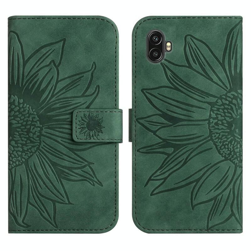 Για το Samsung Galaxy Xcover6 Pro δέρμα αίσθηση Sun Flower μοτίβο Flip δέρμα τηλέφωνο υπόθεση με κορδόνι (πράσινο)