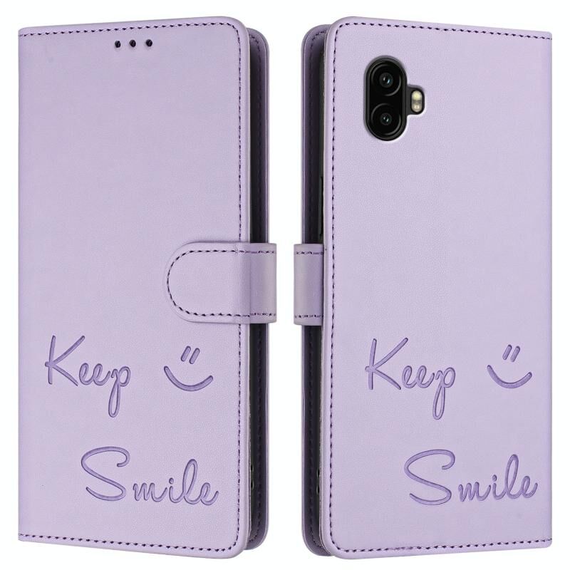 Για Samsung Galaxy XCover6 Pro Χαμόγελο ανάγλυφο RFID δερμάτινη θήκη τηλεφώνου (Light Purple)