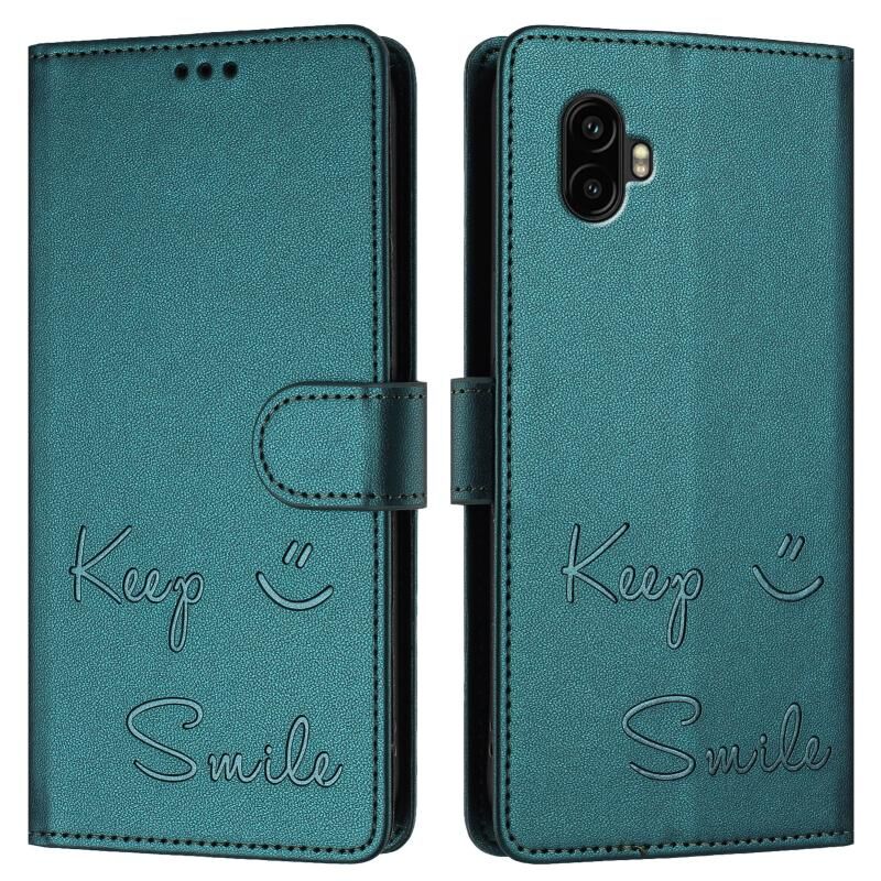 Για Samsung Galaxy XCover6 Pro Χαμόγελο ανάγλυφο RFID δερμάτινη θήκη τηλεφώνου (Πράσινο παγώνι)