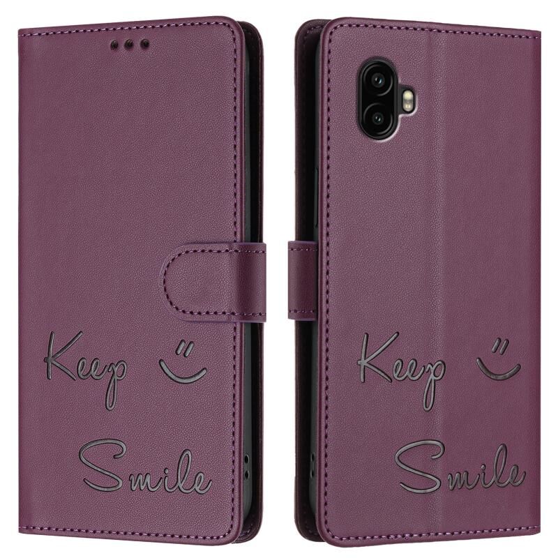 Για Samsung Galaxy XCover6 Pro Χαμόγελο ανάγλυφο RFID δερμάτινη θήκη τηλεφώνου (Violet)