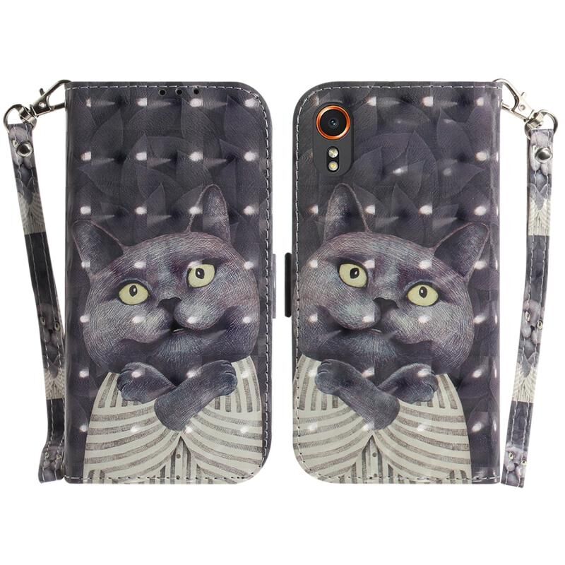 Θήκη τηλεφώνου Samsung Galaxy Xcover7 δερμάτινη, οριζόντια, αναδιπλούμενη, πολύχρωμη 3D (Αγκαλιάζουσα Γάτα)