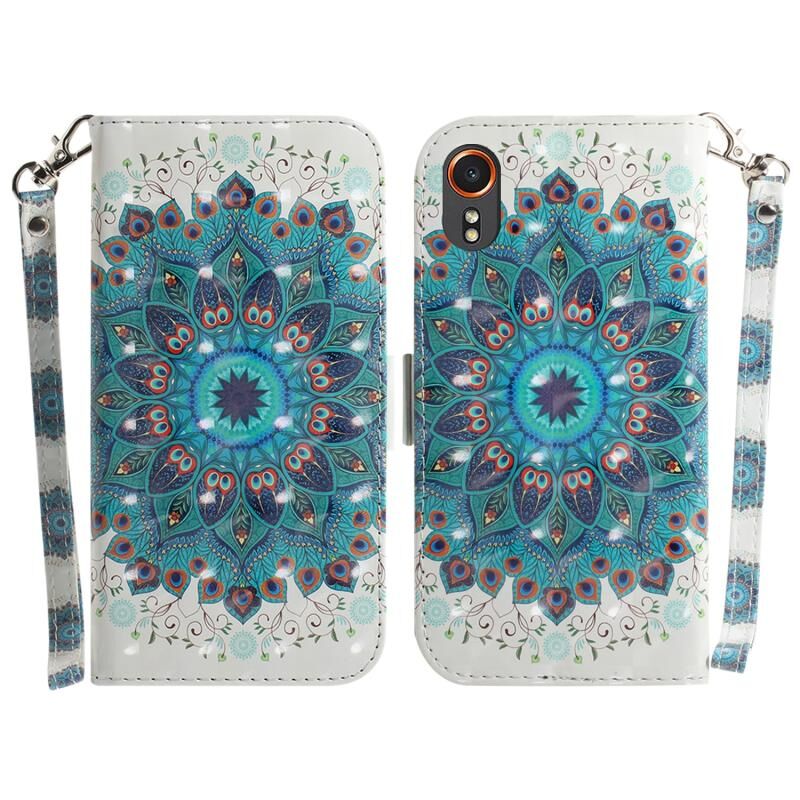 Θήκη τηλεφώνου Samsung Galaxy Xcover7 δερμάτινη, οριζόντια, αναδιπλούμενη, πολύχρωμη 3D (Στεφάνι Παγωνιού)