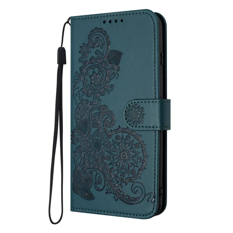 Για Samsung Galaxy Xcover7 5G Datura λουλούδι ανάγλυφο Flip υπόθεση τηλεφώνου δέρμα (σκούρο πράσινο)