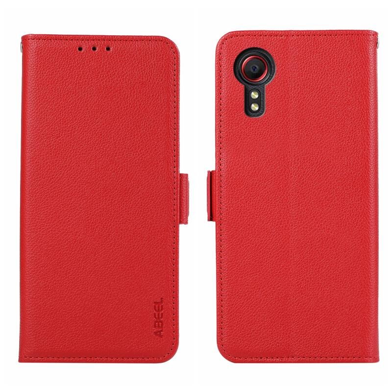 Θήκη κινητού τηλεφώνου Samsung Galaxy Xcover7 ABEEL με μαγνητικό κλείσιμο, δερμάτινη με υφή λitchi και προστασία RFID (Κόκκινο)