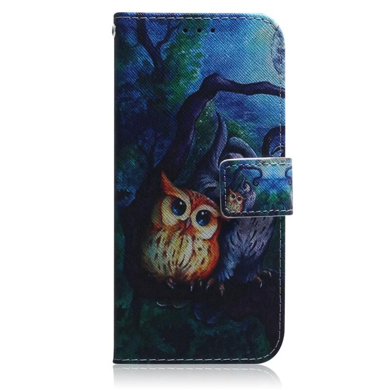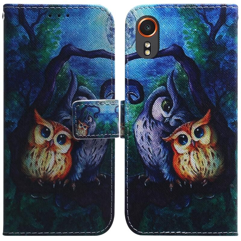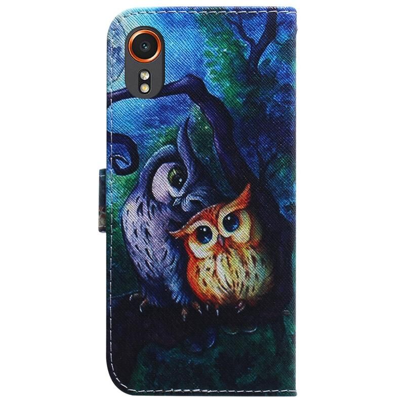 Θήκη τηλεφώνου Samsung Galaxy Xcover7 με σχέδιο ζωγραφικής (κουκουβάγια σε λάδι) από δέρμα τύπου flip, σε διάφορα χρώματα. (Κόκκινο)