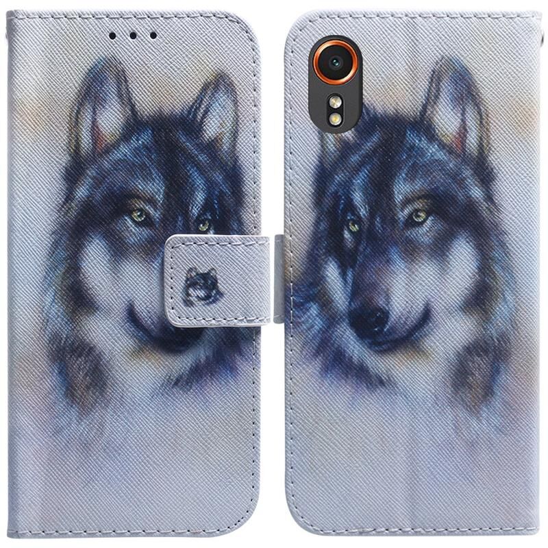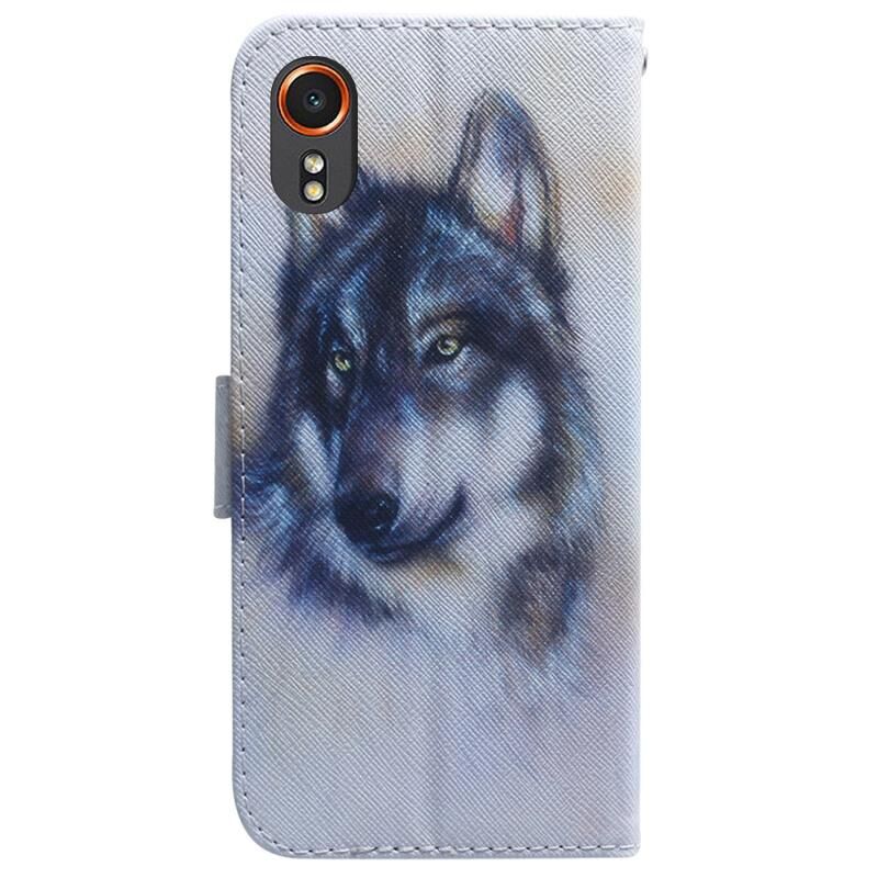 Θήκη τηλεφώνου Samsung Galaxy Xcover7 με σχέδιο σε δέρμα τύπου flip (Λευκός Λύκος)