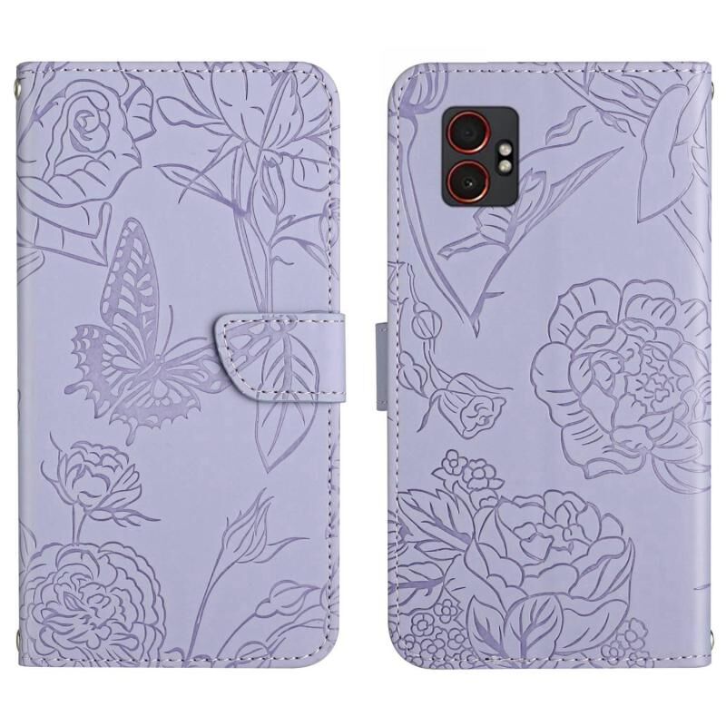 Θήκη τηλεφώνου Samsung Galaxy XCover7 Pro, δερμάτινη, τύπου flip, με ανάγλυφο σχέδιο πεταλούδας και αίσθηση δέρματος (Μωβ)