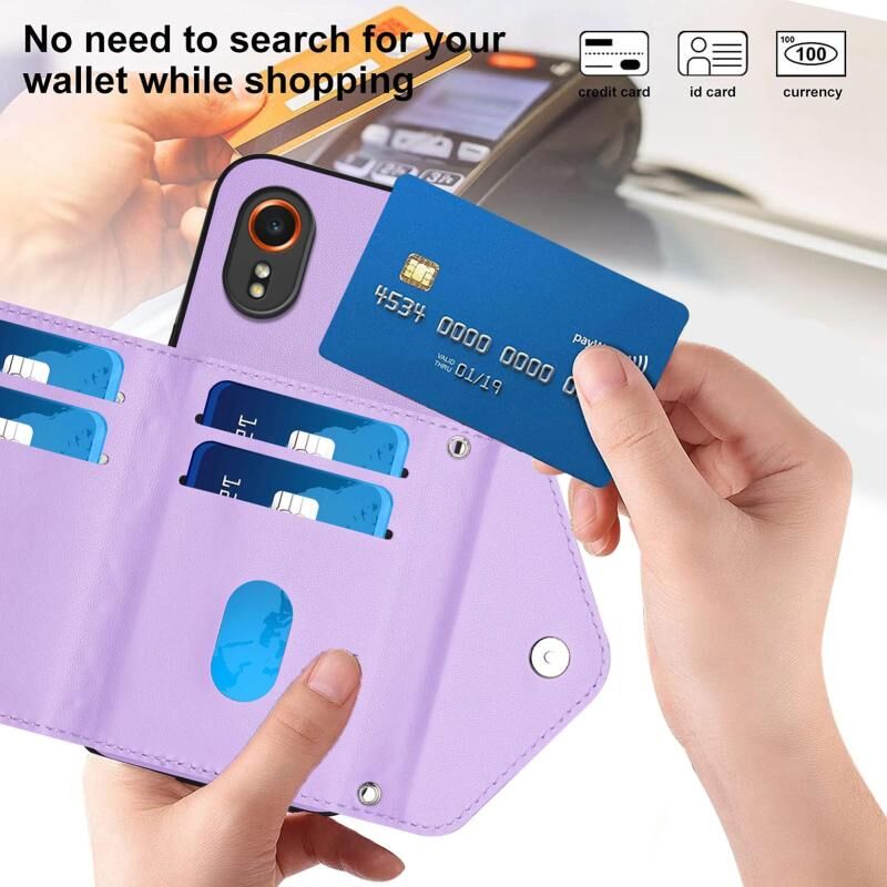 Για Samsung Galaxy XCover7 Rhombic υφή κάρτα τσάντα RFID υπόθεση τηλεφώνου με μακρύ κορδόνι (Light Purple)