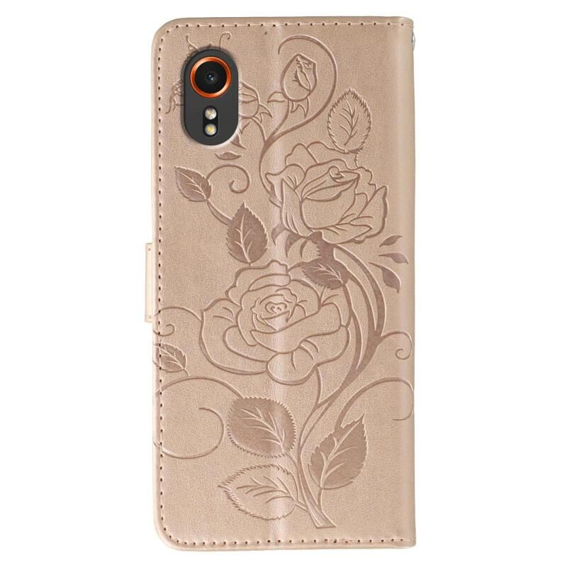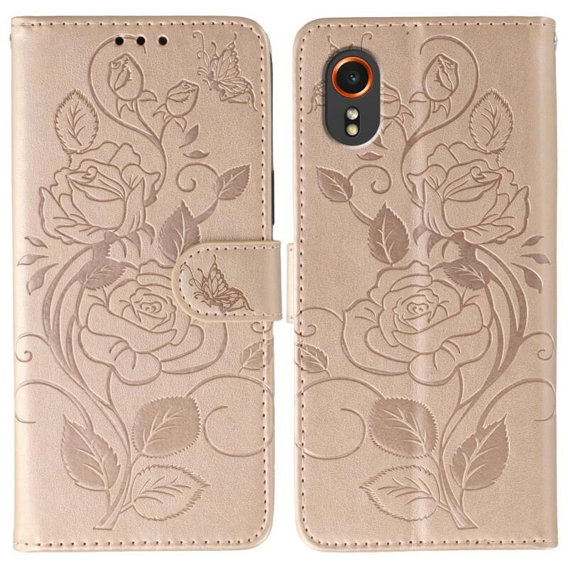 For Samsung Galaxy XCover7 Rose Butterfly Embossed Leather Phone Case(Rose Gold)
