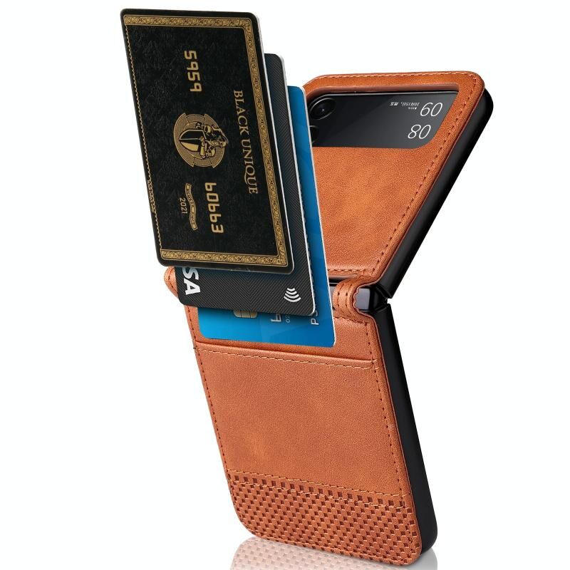 Για Samsung Galaxy Z Filp4 5G εκλεκτής ποιότητας υφή πτυσσόμενα δερμάτινη θήκη τηλεφώνου (καφέ)