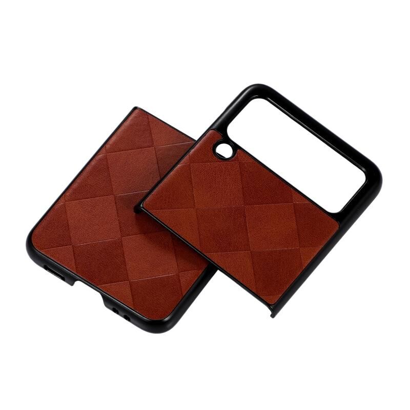Για Samsung Galaxy Z Flip 3 5G Weave καρό PU υπόθεση τηλεφώνου (καφέ)