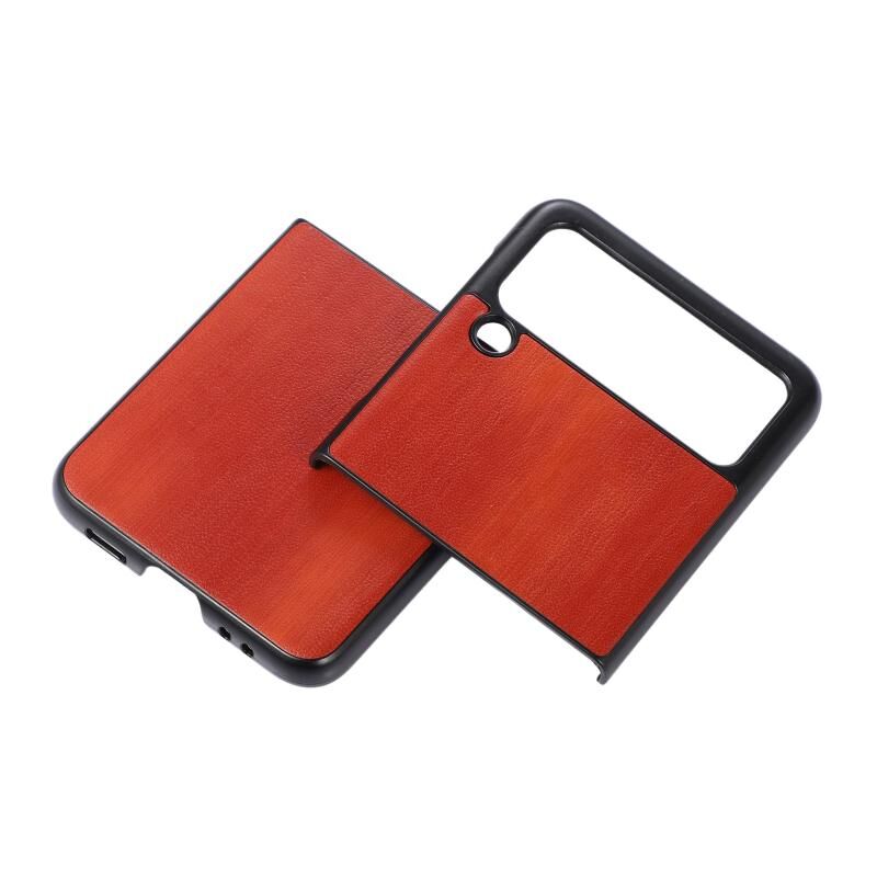 Για το Samsung Galaxy Z Flip 3 5G Κίτρινη υπόθεση τηλεφώνου PU με υφή αγελάδας (καφέ)
