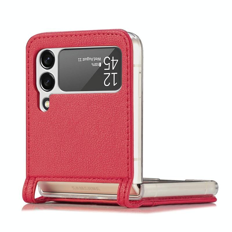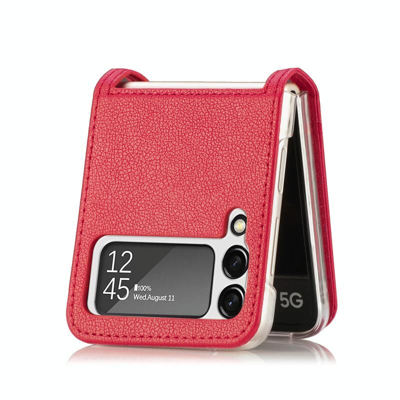 Για Samsung Galaxy Z Flip 4 5G Πτυσσόμενα Litchi Υφή κάρτα πορτοφόλι υπόθεση τηλεφώνου (κόκκινο)