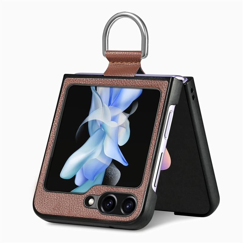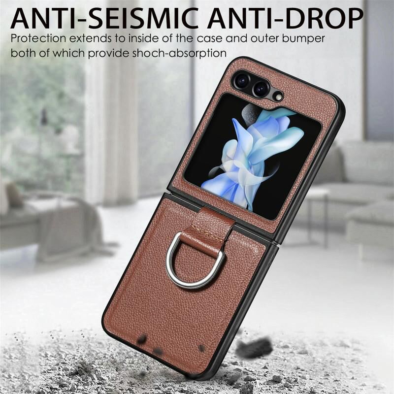 Για Samsung Galaxy Z Flip 6 5G Litchi Υφή Δερμάτινο δαχτυλίδι θήκη τηλεφώνου (καφέ)