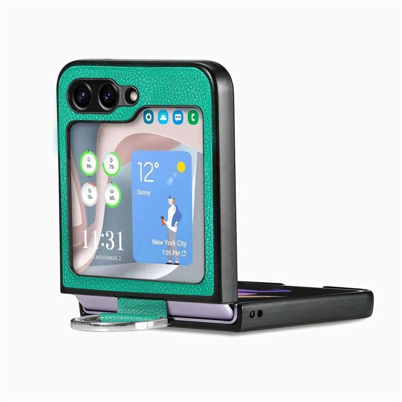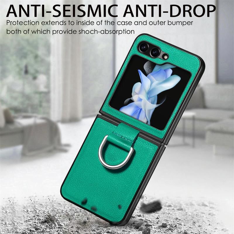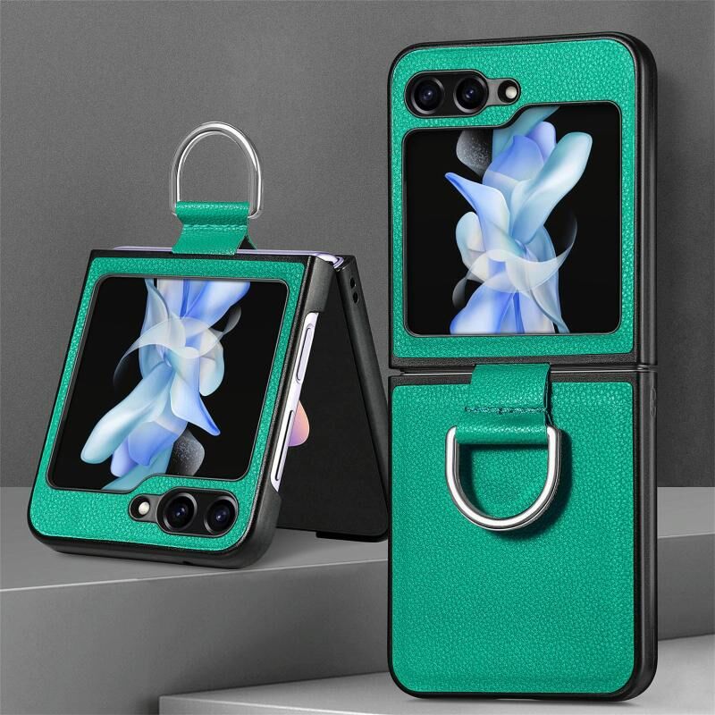 Για Samsung Galaxy Z Flip 6 5G Litchi Υφή Δερμάτινο δαχτυλίδι θήκη τηλεφώνου (πράσινο)