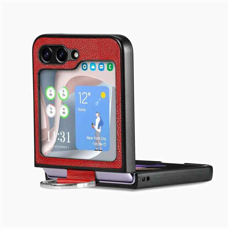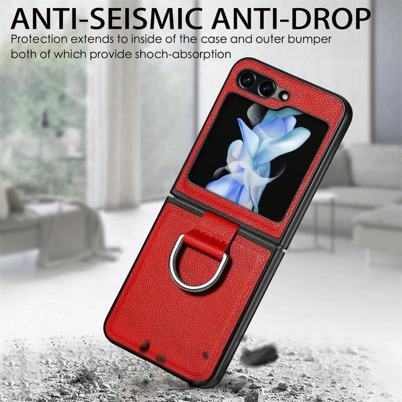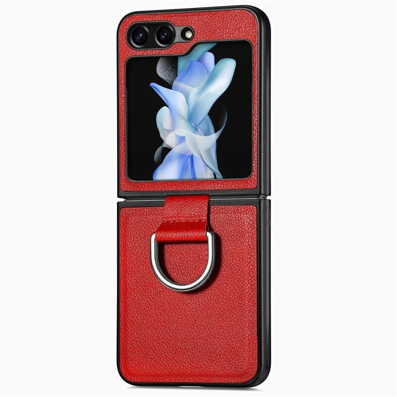 Για Samsung Galaxy Z Flip 6 5G Litchi Υφή Δερμάτινο δαχτυλίδι θήκη τηλεφώνου (κόκκινο)