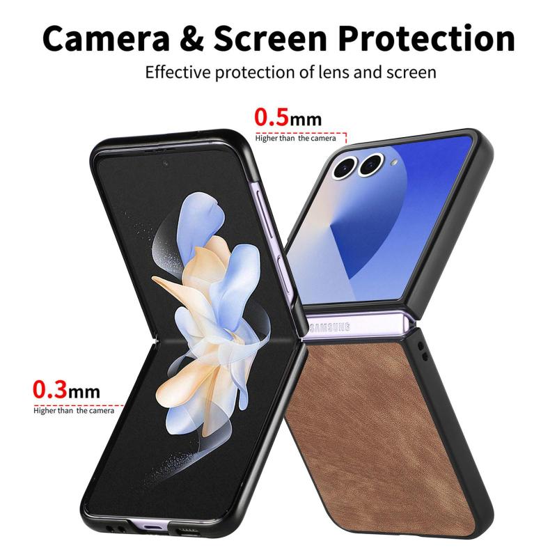Θήκη κινητού Samsung Galaxy Z Flip 7 5G από δέρμα vintage και PC (Μπλε)