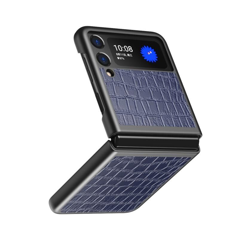 Για το Samsung Galaxy Z Flip Crocodile Texture Leather Folding Προστατευτική θήκη (μπλε)