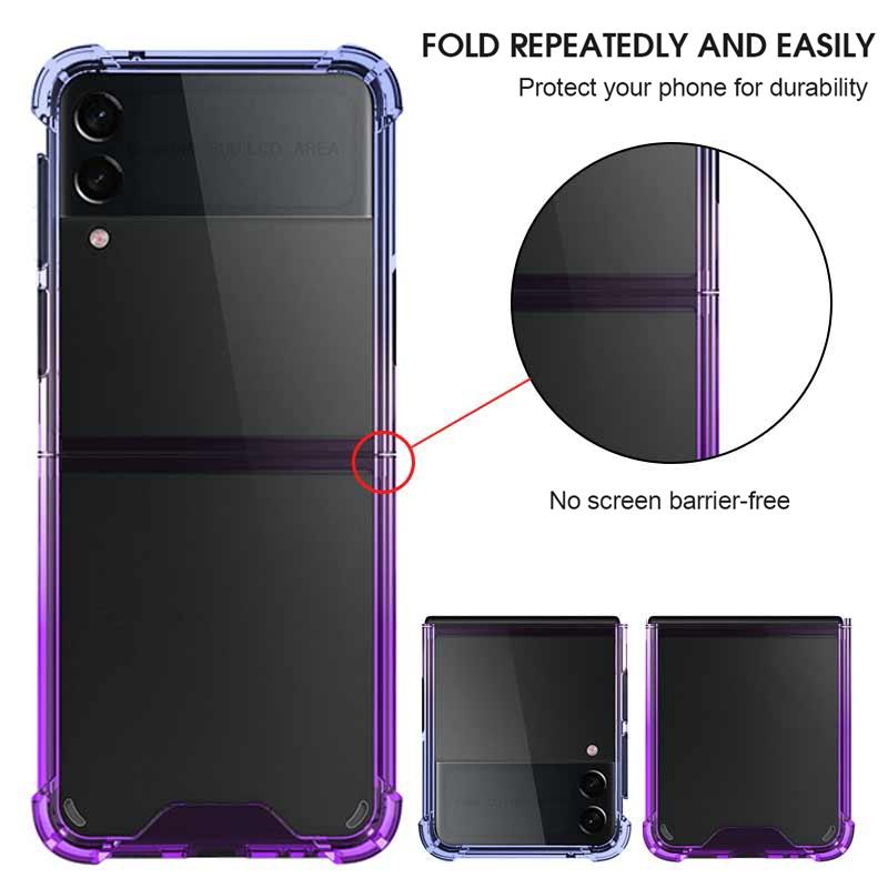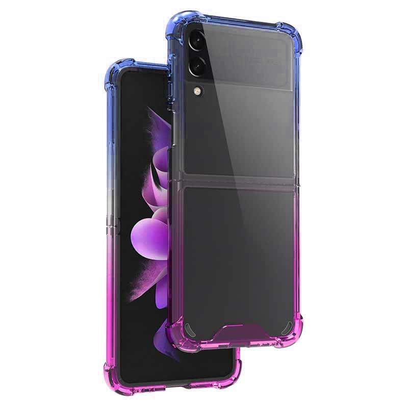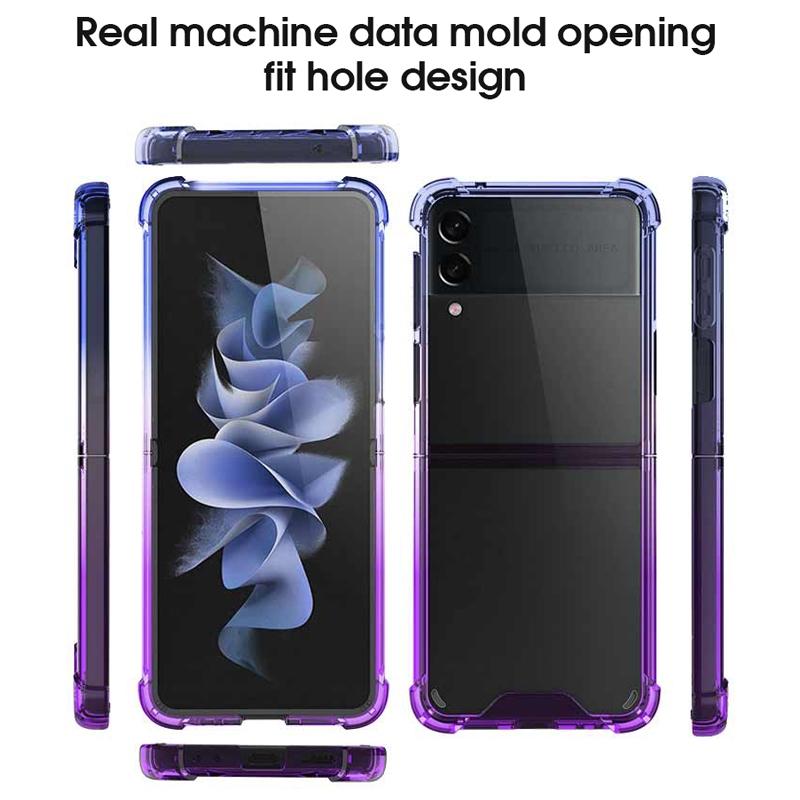 Θήκη κινητού τηλεφώνου για Samsung Galaxy Z Flip3 5G, ακρυλική, διαβαθμιστικών χρωμάτων, αντικραδασμική (Μπλε-Μωβ)