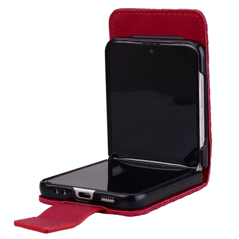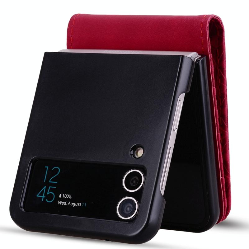 For Samsung Galaxy Z Flip3 5G Business Diamond Buckle Leather Phone Case with Lanyard(Wine Red)