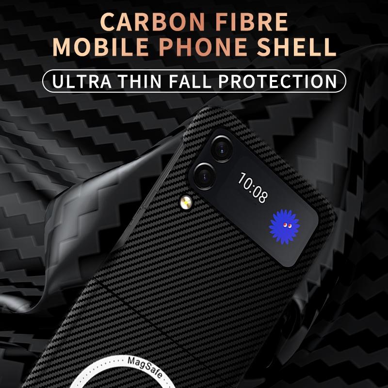 For Samsung Galaxy Z Flip3 5G Carbon Fiber Texture MagSafe Magnetic Phone Case(Black Blue)