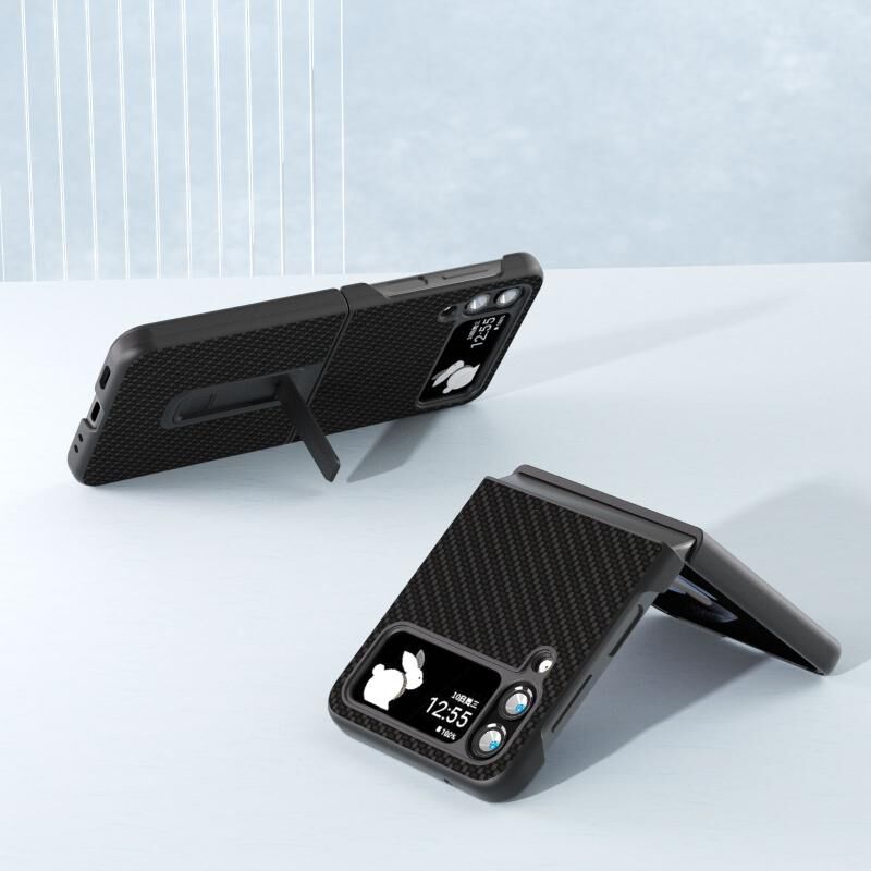 Για Samsung Galaxy Z Flip3 5G Carbon Fiber υφή Προστατευτική θήκη τηλεφώνου με θήκη (μαύρο)