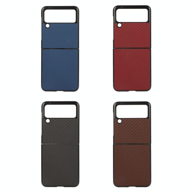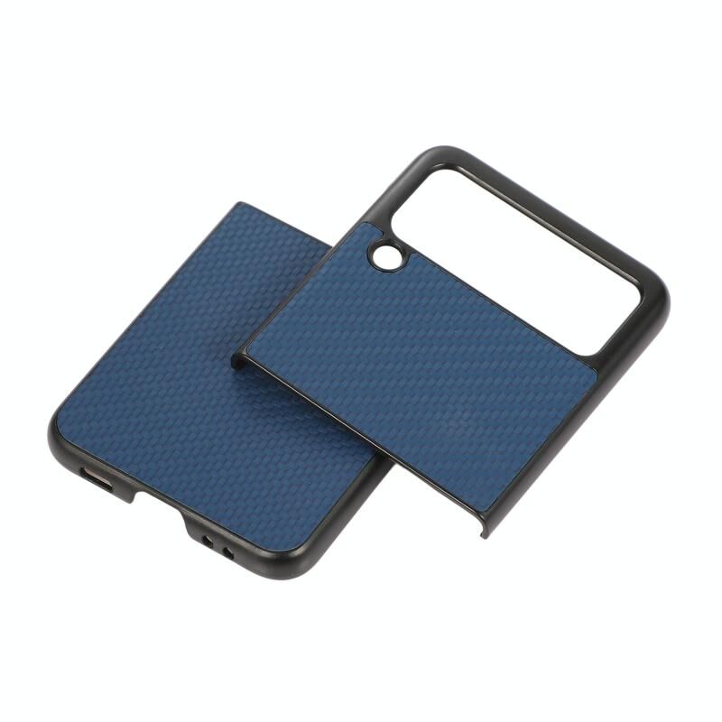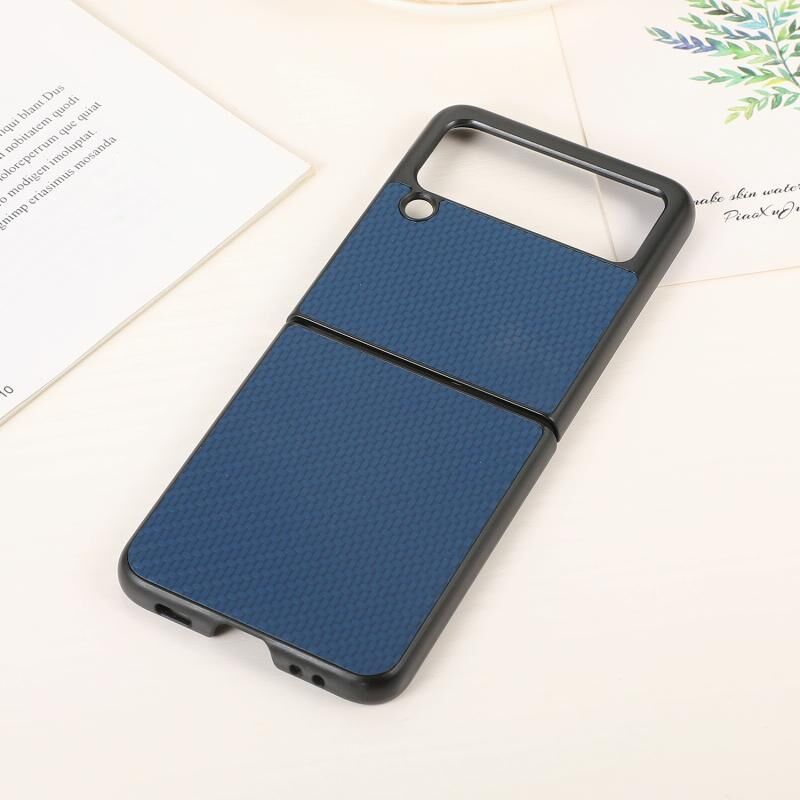 Για το Samsung Galaxy Z Flip3 5G Ανθρακονήματα υφή PU δέρμα τηλέφωνο υπόθεση (μπλε)