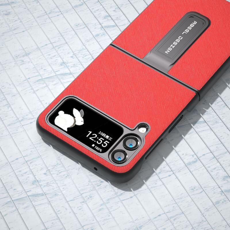 Θήκη τηλεφώνου από γνήσιο δέρμα με ανάγλυφη υφή για Samsung Galaxy Z Flip3 5G με βάση στήριξης (Μαύρο)