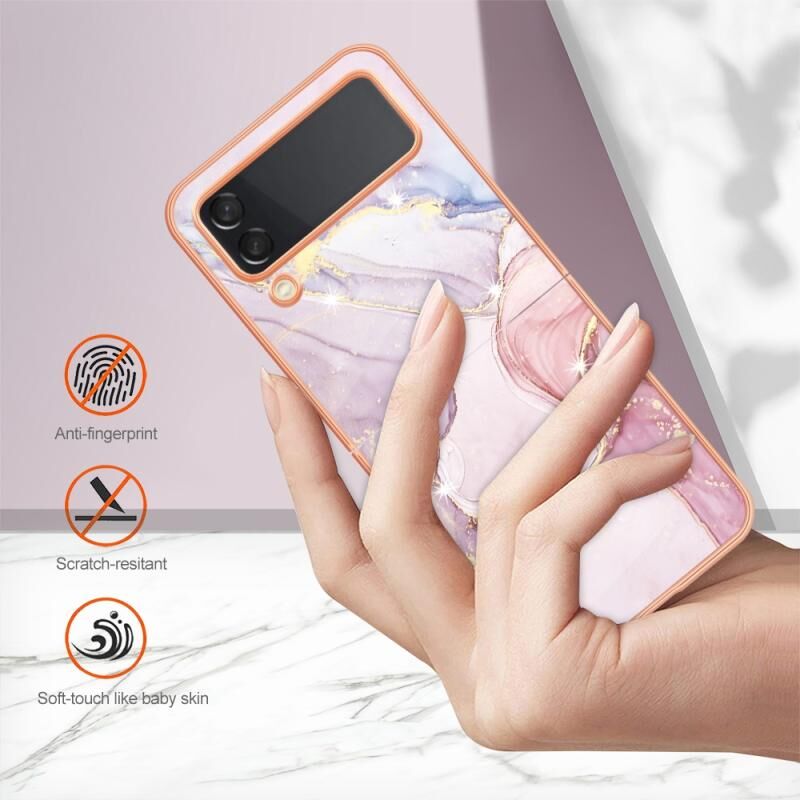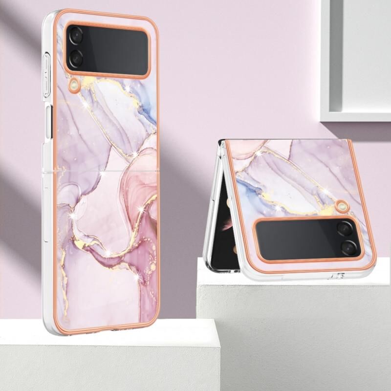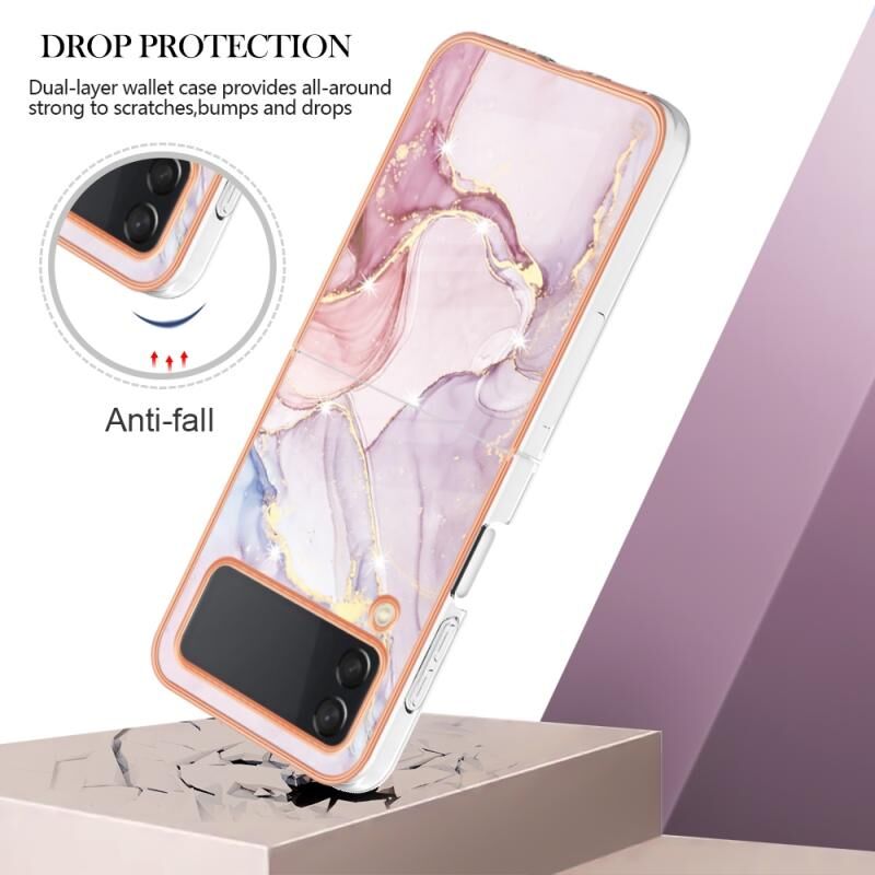 Θήκη τηλεφώνου για Samsung Galaxy Z Flip3 5G με ηλεκτρολυτική μαρμάρινη επένδυση IMD διπλής όψης (Χρυσό Ρόδι 005)