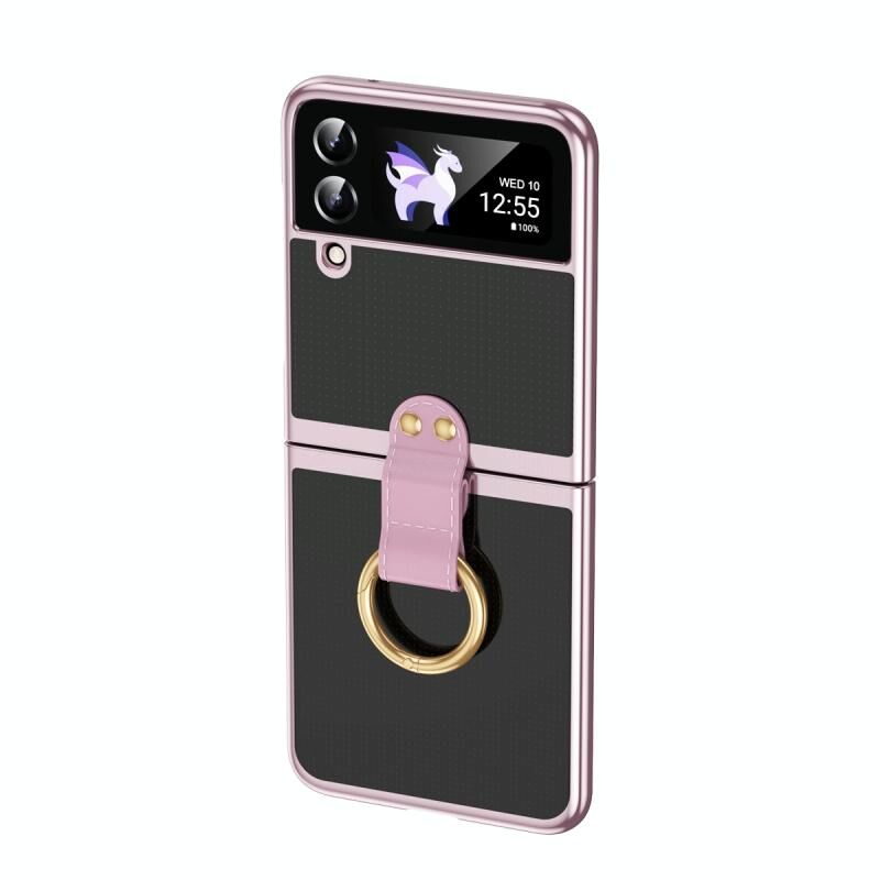 Για Samsung Galaxy Z Flip3 5G Electroplating Διαφανής θήκη τηλεφώνου με δαχτυλίδι (ροζ χρυσό)