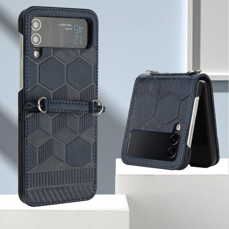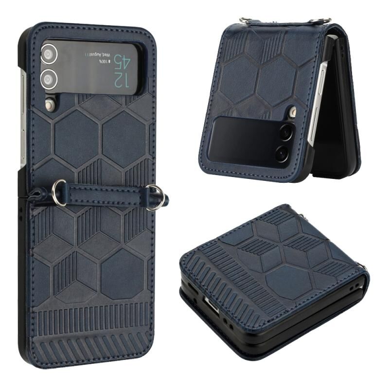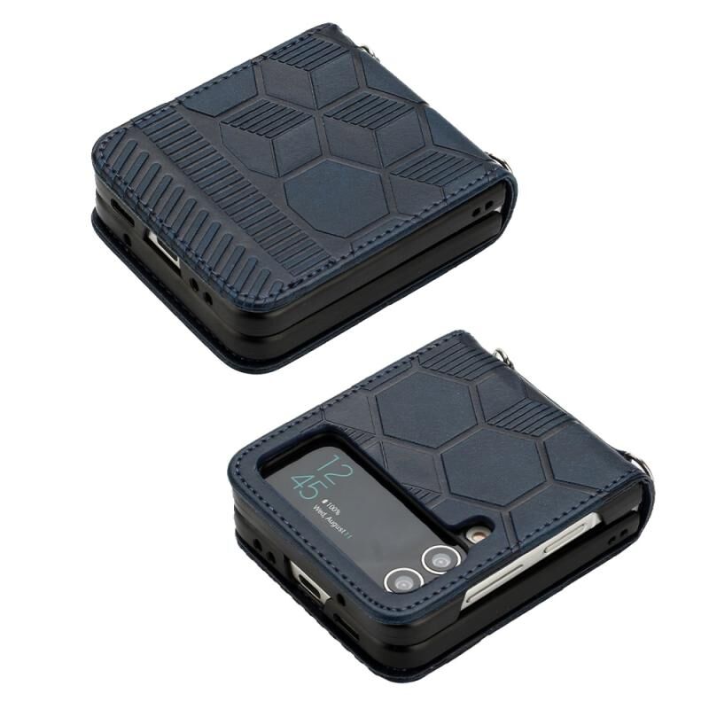 Για Samsung Galaxy Z Flip3 5G ποδόσφαιρο Υφή δερμάτινη θήκη τηλεφώνου (σκούρο μπλε)