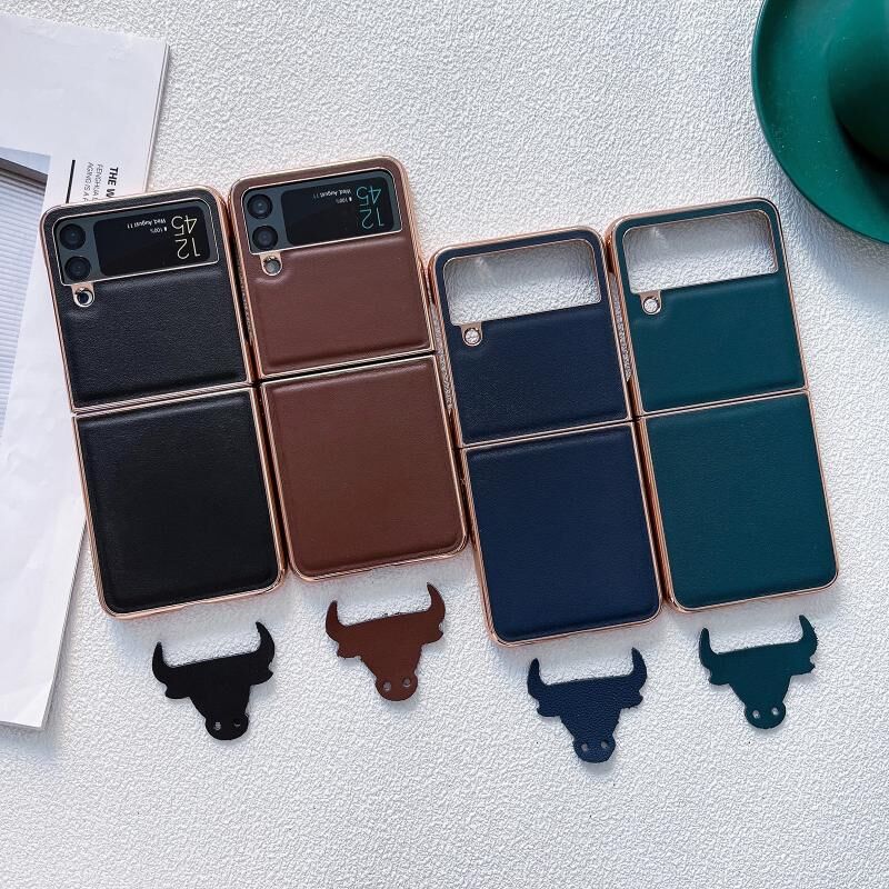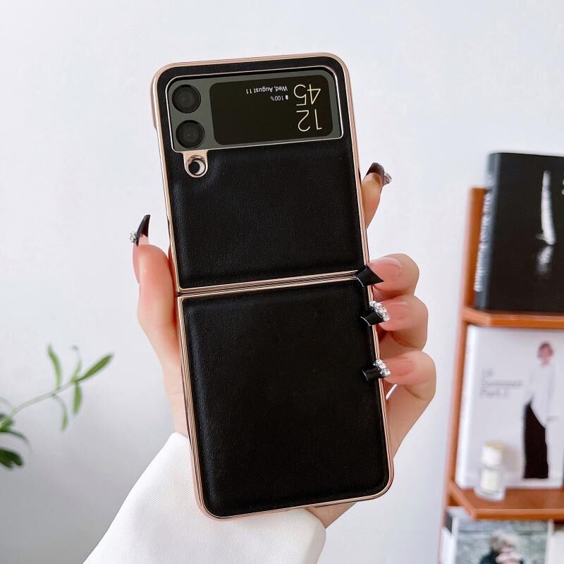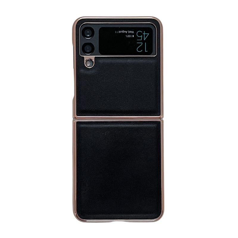 Θήκη τηλεφώνου Samsung Galaxy Z Flip3 5G από γνήσιο δέρμα Xiaoya Series με νανοεπίχρυση (Μαύρο)