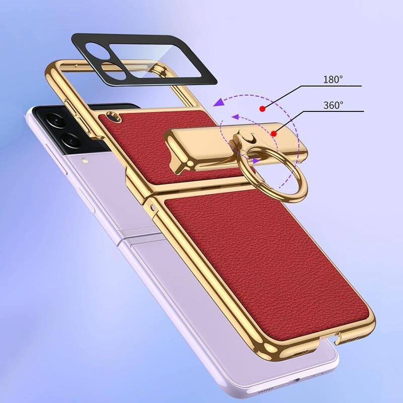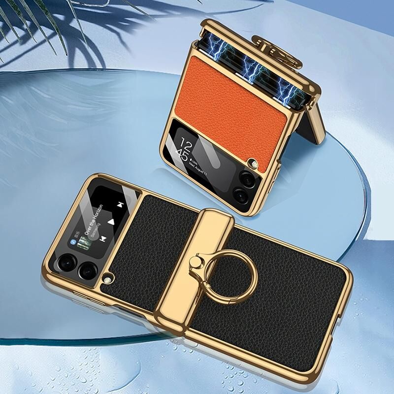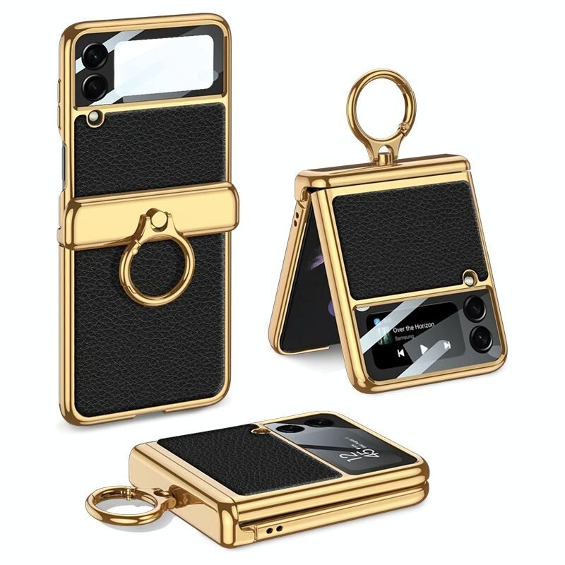 Για το Samsung Galaxy Z Flip3 5G GKK Integrated Plating + Δερμάτινη θήκη Flip Phone Case (Μαύρο) (GKK)