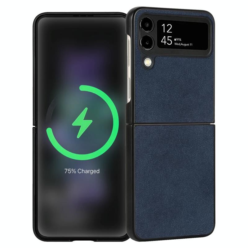 Θήκη για Samsung Galaxy Z Flip3 5G, Δερμάτινη με Υφή Δέρματος Αμνού, Διπλούμενου Τηλεφώνου (Σκούρο μπλε)