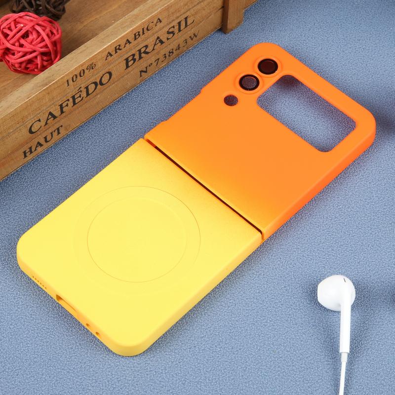 Θήκη τηλεφώνου για Samsung Galaxy Z Flip3 5G, Υγρή σιλικόνη TPU με διαβάθμιση χρώματος, συμβατή με MagSafe (Πορτοκαλί-κίτρινο)